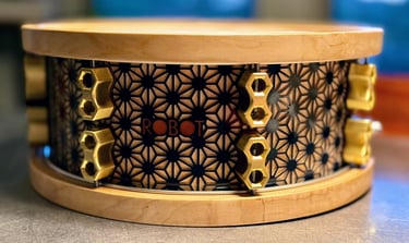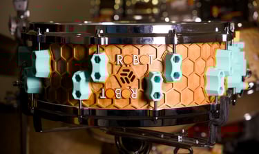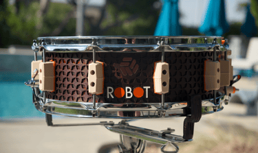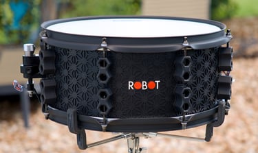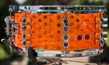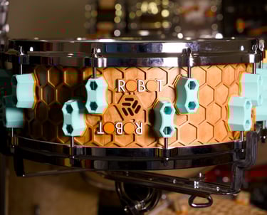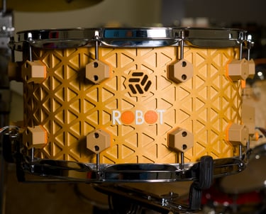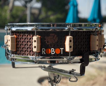 Brass or Composite Hardware – Robot Lug One lugs in machined brass or glass fiber reinforced composite available in multiple finish options. The brass lugs are high-mass and provide damping to reduce shell resonance, giving you a more EQ'd sound signature. The composite lugs are low mass and allow the drum to resonate more fully, maximizing the tonal qualities of the more resonant machined shell. Available with Trick Drums GS007AM Multi-step Throw Off or Robot TO-One composite throw off