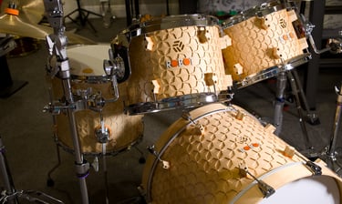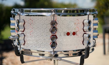 Mass Reduction - Strategic machining lightens the shell and lowers its fundamental resonant frequency, deepening the voice of the drum and emphasizing low-mid warmth.